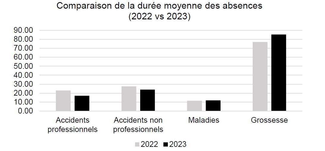 Si les chiffres montrent une tendance réjouissante à la baisse de l’absentéisme en 2023, les chiffres 2024 et futurs permettront d’effectuer une analyse plus approfondie de l’évolution de l’absentéisme.