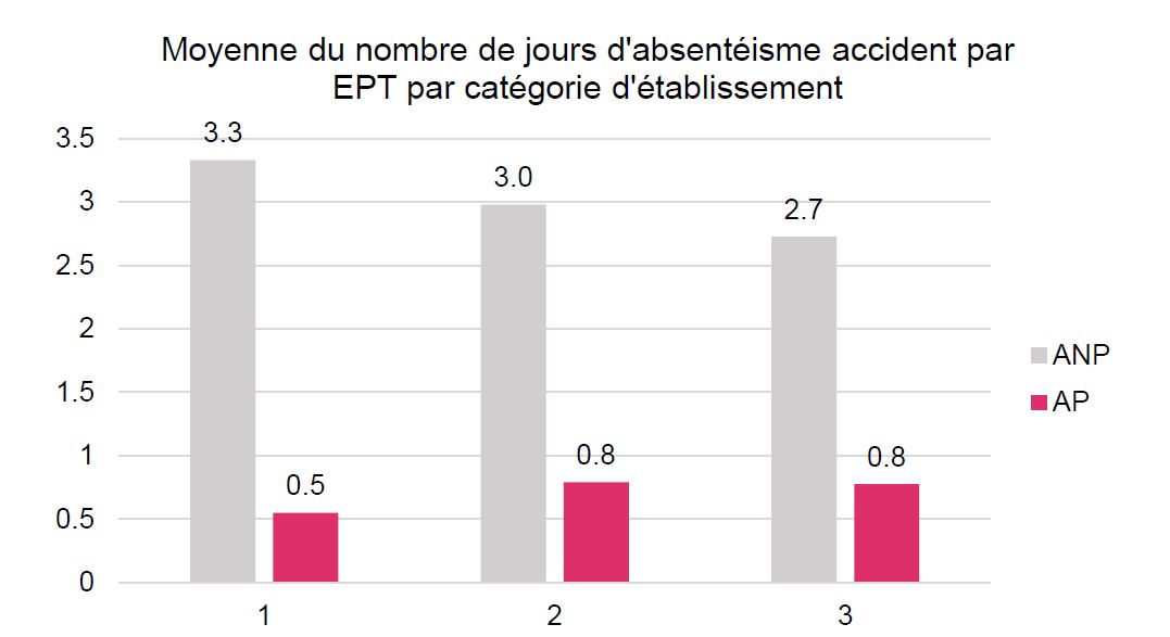 Les absences pour accidents non professionnels entraînent une durée moyenne d’absence plus élevée (24 jours par cas), contre 17 jours pour les accidents professionnels et 12 jours pour les maladies.
