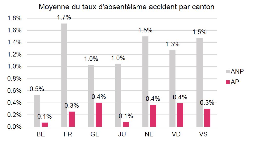 Le taux d’absences dues aux accidents professionnels (AP) est passé de 0.6% en 2022 à 0.3% en 2023, soit une réduction de moitié.
