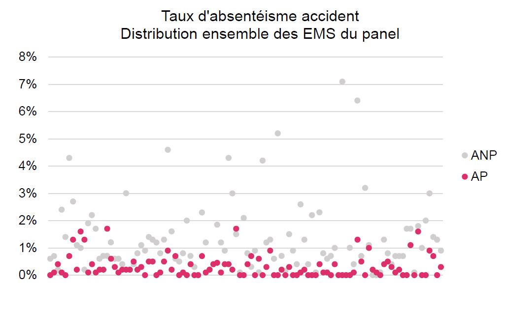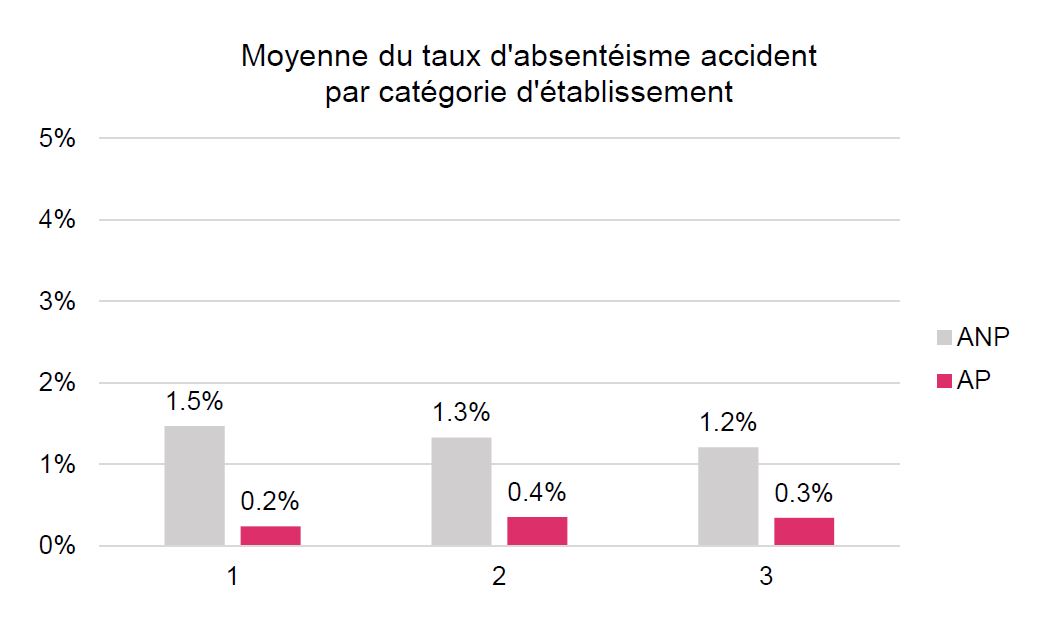 Les absences liées aux accidents non professionnels (ANP) ont connu une réduction plus modérée, passant de 1,4 % en 2022 à 1,3 % en 2023. Bien que cette diminution soit moins marquée, elle indique une stabilisation dans cette catégorie.