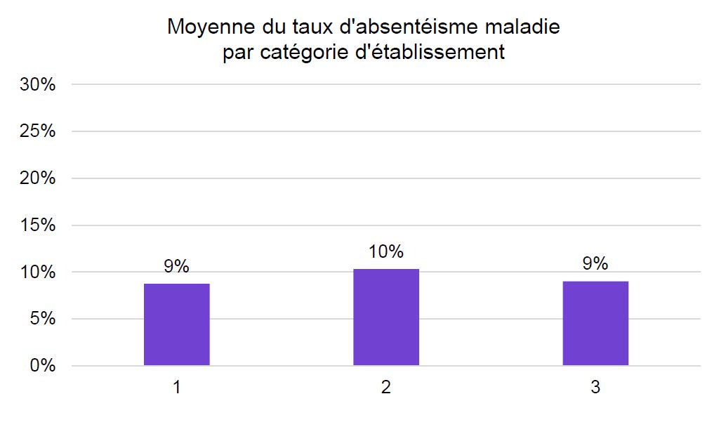 L’analyse des données comparatives entre 2022 et 2023 met en évidence une légère diminution du taux d’absentéisme global, qui est passé de 12,3 % en 2022 à 11,0 % en 2023. Bien que cette tendance à la baisse de l’absentéisme soit positive, et reflète possiblement les efforts en matière de prévention et de gestion des absences, les statistiques à plus long terme et les mesures mises en place dans les différents établissements pourront confirmer cette évolution.