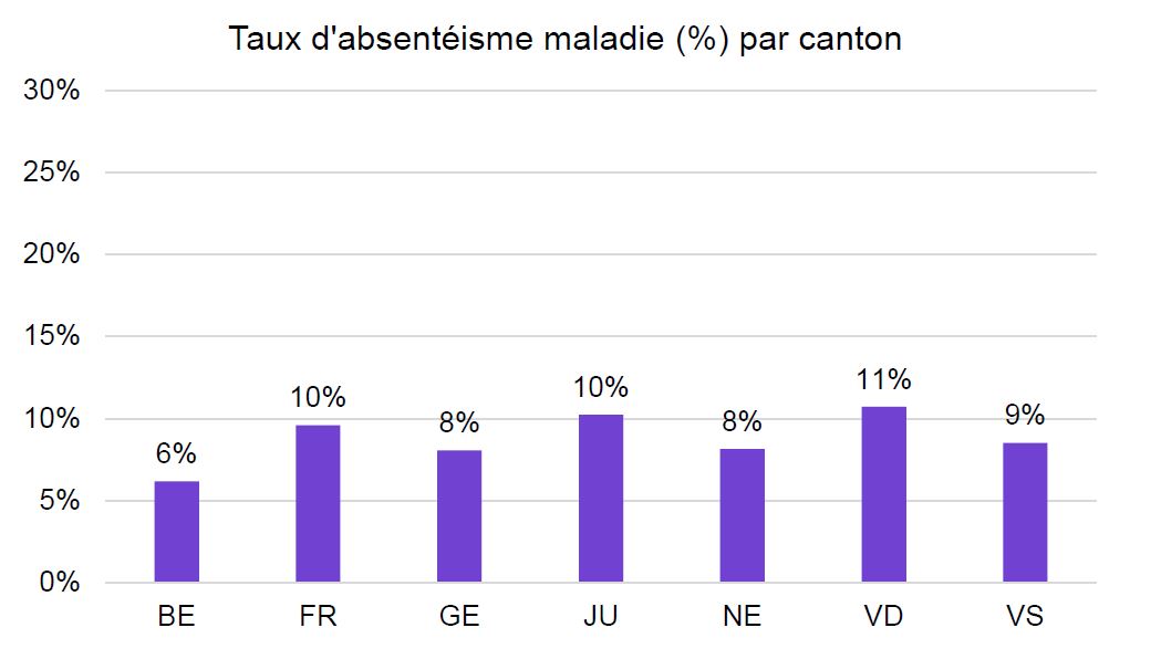 En 2022, 46 établissements avaient accepté de communiquer les données concernant les absences liées à la grossesse. Le nombre de jour total était de 8’331 pour 110 cas (durée d’absence moyenne de 75 jours).